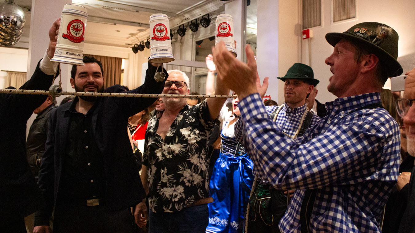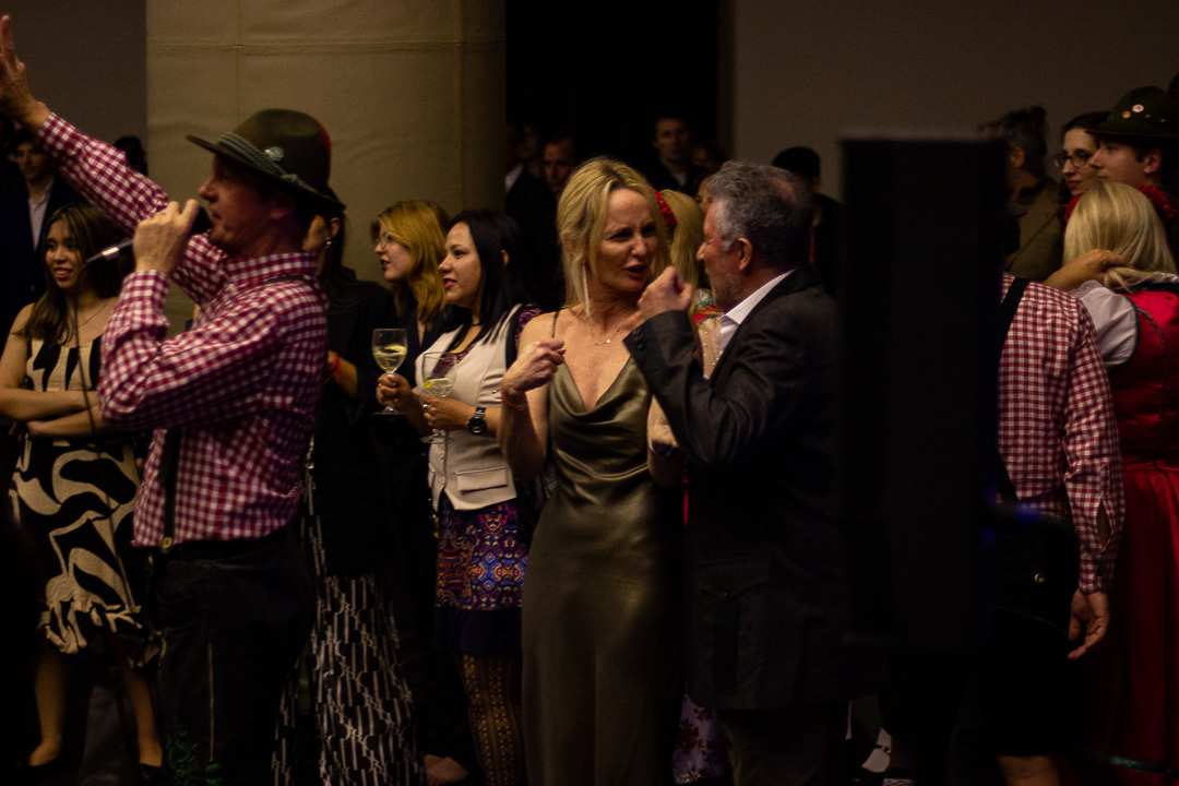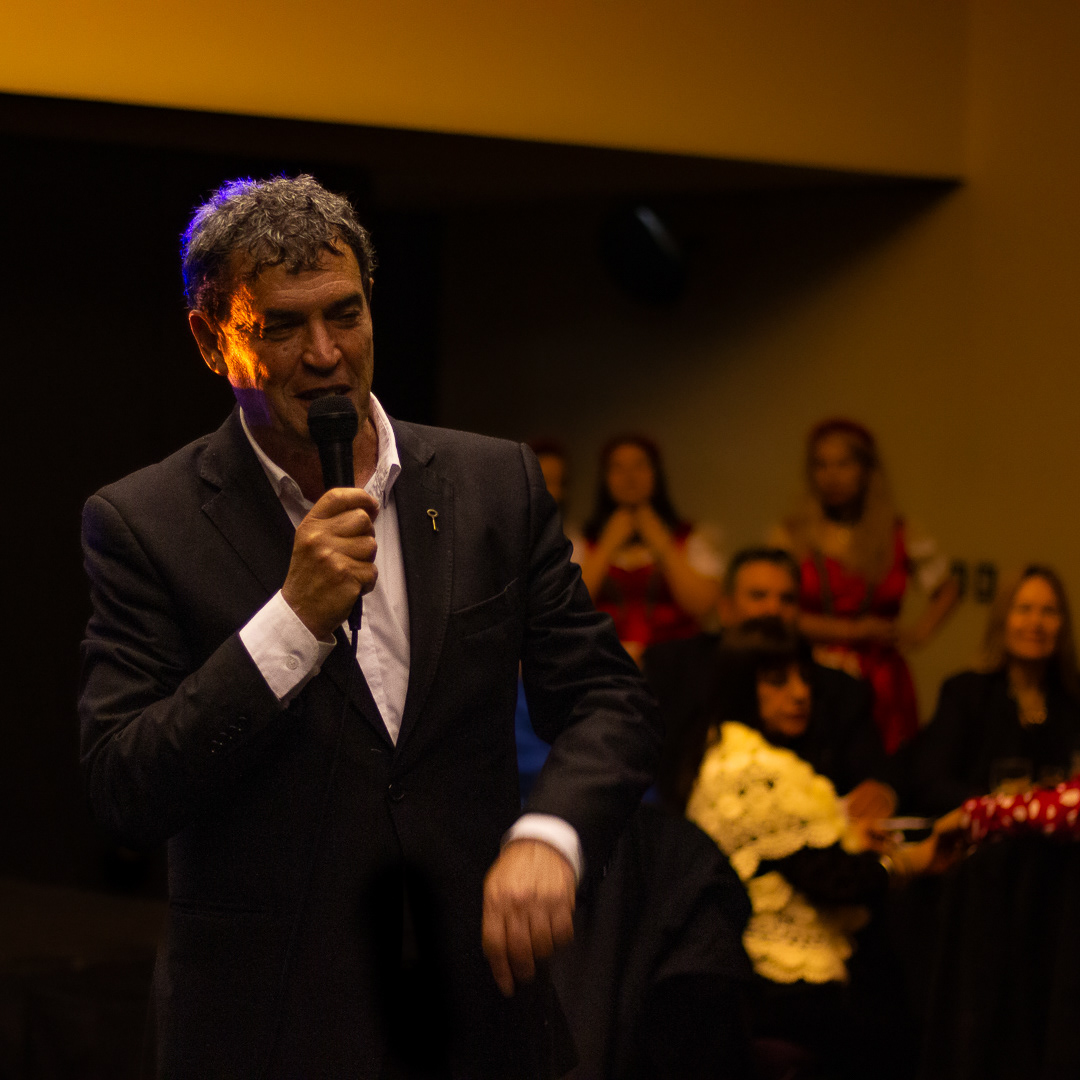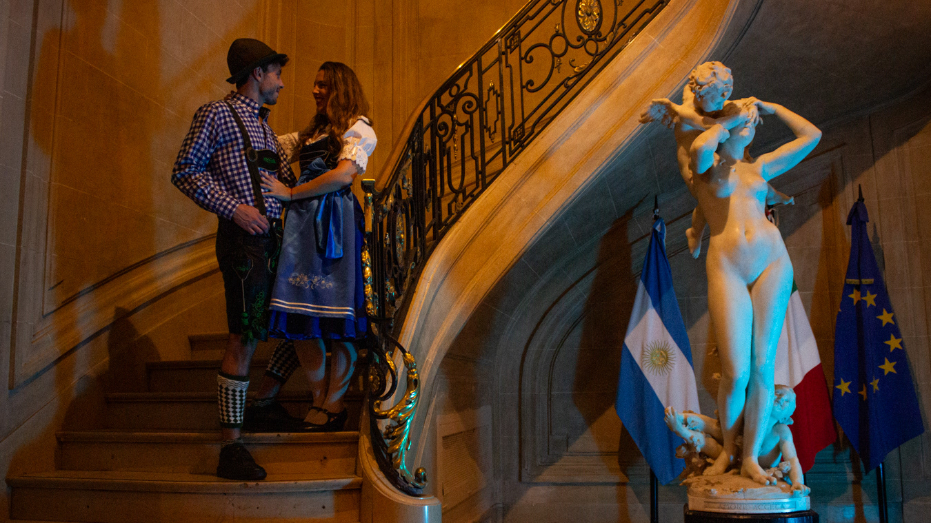El SE. embajador alemán Dieter Lamle contándonos su experiencia sobre la fiesta temática organizada por los 200 años de inmigración alemana en Argentina por el Club Diplómatico a inicios de Septiembre en el Palacio Leloir (Circulo Italiano)